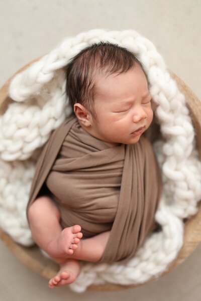 For the parents who prefer a more studio style posed newborn session, with lots of super cute props, bowls and Bub all wrapped up or on my beanbag poser. These sessions still take place in your home and I bring everything to you. Think of it as a traveling studio.